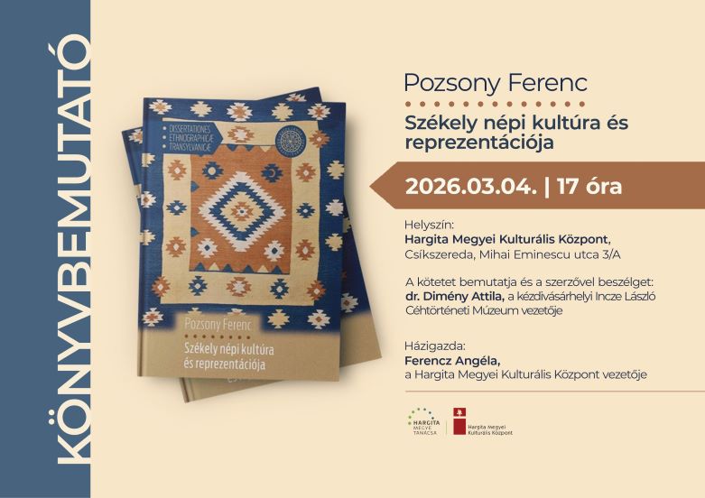 Pozsony Ferenc legújabb, a székely népi kultúrát feltáró kötetét március 4-én, 17 órától mutatja be dr. Dimény Attila, a kézdivásárhelyi Incze László Céhtörténeti Múzeum vezetője a […]