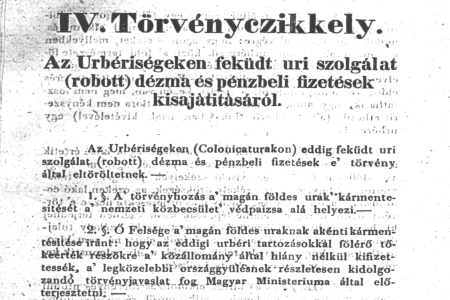 A jobbágyfelszabadítást kimondó IV. Törvénycikk nyomtatott változata (részlet)