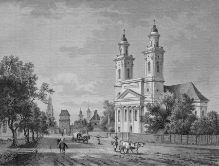 Korabeli utcakép Kolozsvárról az alsóvárosi református templommal