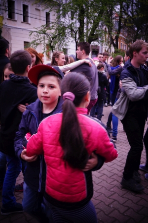 A körrel kapcsolatos első élményem az volt, hogy amikor megalakult 1985 októberében, akkor szólt Csilla, el kéne menni a Brassaiba a gyermekeknek tartani egy bemutatót, vagyis egyet táncoljak, hogy lássák miről is van szó. Én akkor zeneiskolás voltam. Bemenetem az iskolába, a mostani János Zsigmond Unitárius Kollégium dísztermébe, akkor egy elég lepattant, sötét helyiség volt, néhány neoncső égett csak. Vagy kétszáz hozzám hasonló gyermekkel találtam szemben magam, mert akkor még egy-egy gimnazista osztályba negyven-ötven tanuló is járt, s a két ötödik meg a két hatodik osztály volt jelen. Csillának volt egy kazetofonja, feltett egy pontozót, én úgy egyenruhásan táncoltam egyet, mert emlékszem, tanítás után voltunk, a gyermekek megnézték, aztán én egy darabig arra felé sem mentem. Mert én akkor már tudtam táncolni, nem volt miért járjak. Amikor az év végi műsor következett, megint szólt Csilla, hogy erősíteni kellene a csapatot. Akkor újra elmentem, néhány próba alatt megtanultam a táncokat, amikkel ők éppen foglakoztak, táncoltam az előadáson, és ott ragadtam.