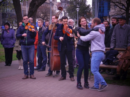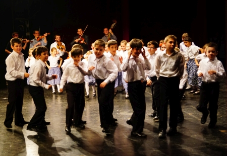 Mi eléggé szabadelvűek vagyunk, mégis a Bogáncs szellemisége nagyon közel áll az eredeti táncházhoz. Mert a gyermekeket úgy próbáljuk megtanítani táncolni, ahogy az valamikor a tánchagyományban történt, vagyis „apáról fiúra” szállón az egyik nemzedék a másiktól tanult. Persze, mi ezt már tudatosan tesszük egy felgyorsított folyamat során. Hiszen régen valaki beleszületett egy hagyományba, s volt neki vagy húsz éve, hogy megtanuljon táncolni. Aztán egész életét ugyanannak a falunak a hagyományában töltötte. Most mindezt egy-két év alatt kell megtanítani a gyermekeknek, nem egy falu táncát oktatjuk, hanem sokét, tudatosan, tánctechnikai módszerekkel. A Bogáncsnál egy próba bemelegítővel (tornával) kezdődik, majd ritmus- és tánctechnikai gyakorlatokkal folytatódik, és csak utána térünk rá a tulajdonképpeni táncolásra, éneklésre. Ezzel a módszerrel azt értük el, hogy ha a gyermekek elmennek egy táncmulatságba, be tudnak kapcsolódni, népdalokat is tudnak énekelni. Vagyis a lényeget megkapják. Mert a mai táncházban pont a lényeg vesz el. Mert lassan a mai táncházban is a táncosok inkább csillogni-villogni akarnak, nem szórakozni, szóval egyféle magamutogatás zajlik. Hadd éljek példával. A falusi közösségi táncalkalmakkor két lényeges dolgot tartottak be. Az egyik az, hogy mindenkinek szabad volt táncolni, és illett is, például, ha egy lányt felkértek, nem utasíthatta vissza. A másik pedig az, hogy megtisztelték egymást azzal, hogy rendre mindenkinek jutott hely táncolásra a zenészek előtt. Mert sokkal jobb a zenész előtt táncolni, ahol jól hallható a zene, mint a terem végében. Mi a táncosainkat is így neveljük. Pedig egyre nagyobb divat, itt Erdélyben is, hogy egy-egy táncalkalomkor az első két sorban táncolnak a zenészek előtt a „profik”, akik onnan el nem jönnek, ameddig szét nem verik magukat, középen, a széleken táncolgat, aki még akar, a nagy tömeg pedig ül, mert sokan egyszerűen nem tudnak részt venni ebben, hiszen ilyen körülmények között nem is lehet. A mi bogáncsosainkat megtanítjuk énekelni is, hisz valamikor a táncos összejövetelek végén a fiatalok összekapaszkodva néha hajnalig daloltak. A mai világban erre sajnos már nincs igény, a fiatalok közül sokan nem is ismernek népdalokat. Így tűnnek el olyan dolgok, amelyek valamikor közösségeket tartottak össze. Még egy megjegyzés a mai táncházmozgalommal kapcsolatban: a régi táncházak kis közösségek táncalkalmai voltak. A valamikori kolozsvári táncházba azok a fiatalok jártak, akik lassan csapattá szoktak össze, ismerték egymást, tudták, hogy ki kicsoda, akárcsak faluhelyen. Minden alkalommal érkeztek újak, de akik ott ragadtak, azok hamar a csapat tagjaivá váltak. A Bogáncs is erről szól, bárki jöhet, s aki rendszeresen jár közénk, egy idő után a csapat tagja lesz. Ezzel szemben ma arra törekednek, hogy minél többen és minél szélesebb körben táncoljanak, ezért jöttek létre ezek a monstrum rendezvények, mint például a budapesti táncháztalálkozó, amelyen ezrek vesznek részt. Most felteszem a kérdést: ilyen sok ember hogy tud együtt mulatni? Hiszen nem is ismerhetik egymást. Egyszerűen felhígult a táncházmozgalom a show, a pénz, a sztározás miatt, és persze a sajtó arról tudósít, hogy tízezren voltak, vagyis egyre többen táncolnak. De szerintem nem ez a cél! A cél az, hogy meg kell teremteni a lehetőséget, hogy bármelyik kisvárosban, faluban, iskolában lehessen néptáncon keresztül közösséget szervezni. És én úgy képzelem el az igazi néptáncmozgalmat, mint ezeknek a kisközösségeknek a laza hálózatát. Szerintem sokan arra törekednek, hogy tömegmozgalommá váljon a táncház, ennek főleg anyagi vonzatai miatt. Sajnos, ebben a folyamatban a médiának és politikumnak is erős a befolyása. Mert ugye, ha felavatnak valamit, ott kell lennie néhány, népviseletbe öltözött embernek, meg amikor átvágják a szalagot, szólnia kell a népzenének is.
