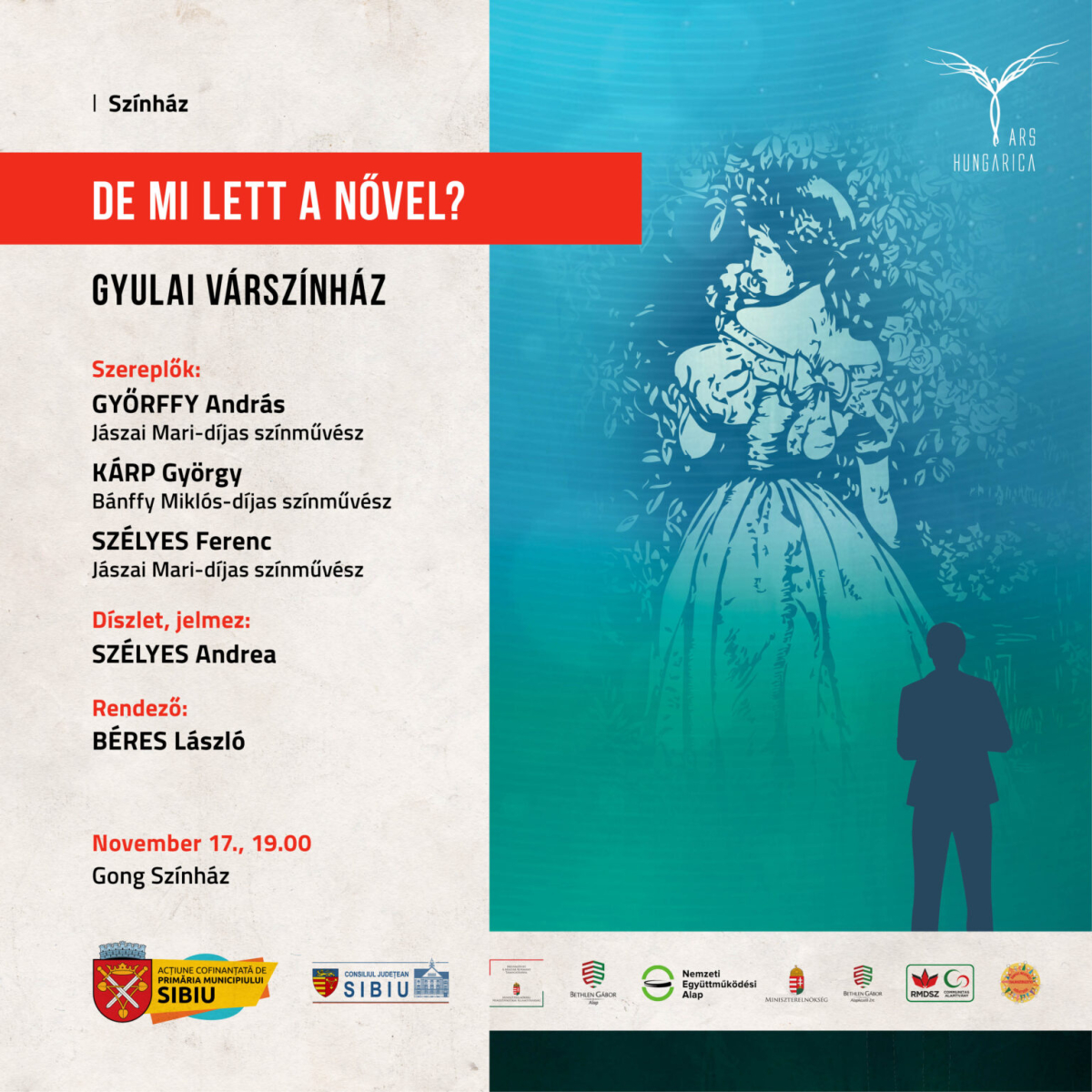 Az Ars Hungarica kulturális fesztivál második hétvégéje színházi előadással kezdődik, november 17-én, pénteken 19:00 órától a Gyulai Várszínház frappáns előadását De mi lett a nővel címmel nézheti meg a közönség a Gong Színházban. A történetben három férfi párbeszédét követhetjük nyomon egy ott nem lévő, eltűnt nőről. A különös dramaturgiájú történetben szerelmek és csalódások, kivégzések és foghúzások, öngyilkosságok és ellenvonatok kavarognak Irina Bikulina ártatlan, mégis felkavaróan buja, szenvedélyes alakja körül. Mi a közös a három, idős utazó színészben? A történet végére kiderül. Előadják: Győrffy András – Jászai Mari-díjas színművész, Kárp György – Bánffy Miklós-díjas színművész és Szélyes Ferenc – Jászai Mari-díjas színművész. Rendező: Béres László, Díszletek: Szélyes Andrea. A belépés, ez esetben is ingyenes.