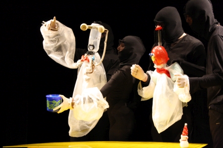 A műanyag csomagolóanyagokból összegyűlt szemétkupacok látványa mindig kétségbe ejtett, hiszen az irdatlanul nagy felelőtlenségünkre figyelmeztetett lépten-nyomon. Erről a problémá(m)ról szerettem volna úgy beszélni, hogy ne legyen didaktikus vagy elcsépelt. Mértéket tartani úgy, hogy mégis figyelemkeltő legyen, megmaradni amennyire csak lehet a középúton úgy, hogy mégis egy álláspontot képviselni, elfogulatlanul szólni arról a műanyagról, amely sokszor a legnagyobb segítségünk, lenyűgöz sokféleségével, praktikusságával, hangjával, fényével, átváltozó képességével, sokoldalúságával – nem könnyű feladat. Az újrahasznosítást újrafogalmaztuk diákjaimmal, és műanyag szemétből megszülettek gyönyörű bábjaink, majd a díszlet is. A Puppet Plastic Passion című előadásban a bábok „nagy” zenéktől keltek életre, és az életet legalább két bábostól kapták. A rideg, érzéketlen műanyagvilágot Mozart, Csajkovszkij, Wagner muzsikája tette szenvedélyessé. A legjobb megoldásnak az ígérkezett, hogy szólaltassuk meg őt magát, a Műanyagot. A Műanyag monológja „mű hangon”, felvételről bejátszott személyes vallomása végigkísérte az előadás jeleneteit, majd így végződött: „Szia! Ugye jó játszani? Velem lehet is. Olyan alakot veszek fel, amilyet csak akarsz! A végtelenségig változtatható a színem, a formám, a méretem. Hatalmas segítség vagyok. Amíg vigyázol rám. És nem szórsz el szanaszét. Mert én ott maradok, ahová dobnak, ahová visz a szél, a víz… Ezer év múlva is szemét leszek és nem a szappanbuborék, nem a sárga gumikacsa. Vigyázz rám. Hadd maradjak mindennapi barátod, a műanyag.”