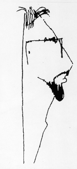 Péter máskor is rajzolt, emlékszem a később befejezett, rendkívül sikerült oldalnézetű önarckép-karikatúrájára. Ez a frappáns profil a profiknak is becsületére vált volna!
