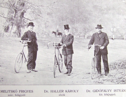 Haller Károly (középen) mint a Kerékpáros Egylet elnöke (az Emlékkönyvből)