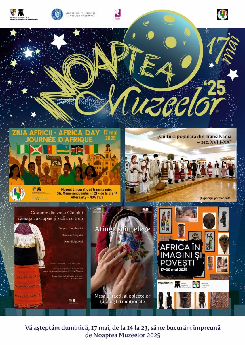 Expoziție temporară: „Costume din zona Clujului” cu piese vestimentare autentice, de patrimoniu, din Câmpia Transilvaniei, Dealurile Clujului și Munții Apuseni, punând în valoare diversitatea, rafinamentul și unitatea costumelor tradiționale locale. Vizitatorii vor putea admira costume de sărbătoare din secolul al XIX-lea și prima parte a secolului XX. Piesele vestimentare expuse au fost selecționate din colecția Muzeului Etnografic al Transilvaniei pentru a pune în lumină, cu precădere, cămașa cu ciupag și zadia cu trup, elemente de veche tradiție în toate subzonele clujene (orar: 18.00-24.00, ultima intrare ora 23.00).