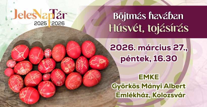 A hagyományőrző gyermekprogram résztvevői Böjtmás havában a húsvéti tojásírás rejtelmeibe nyerhetnek betekintést. A szervezők kérik a résztvevőket, hogy hozzanak magukkal néhány keményre főtt vagy kifújt tojást, valamint gicét / írókát (akinek van). Az esemény szakmai irányítói: Cserey Both Zsuzsa néprajzkutató, kézműves és Szabó Kinga játszóházvezető. A havonta sorra kerülő rendezvényt kisdiákoknak szánják, de a szervezők minden érdeklődőt szívesen látnak, nem utolsósorban a szülőket-nagyszülőket!