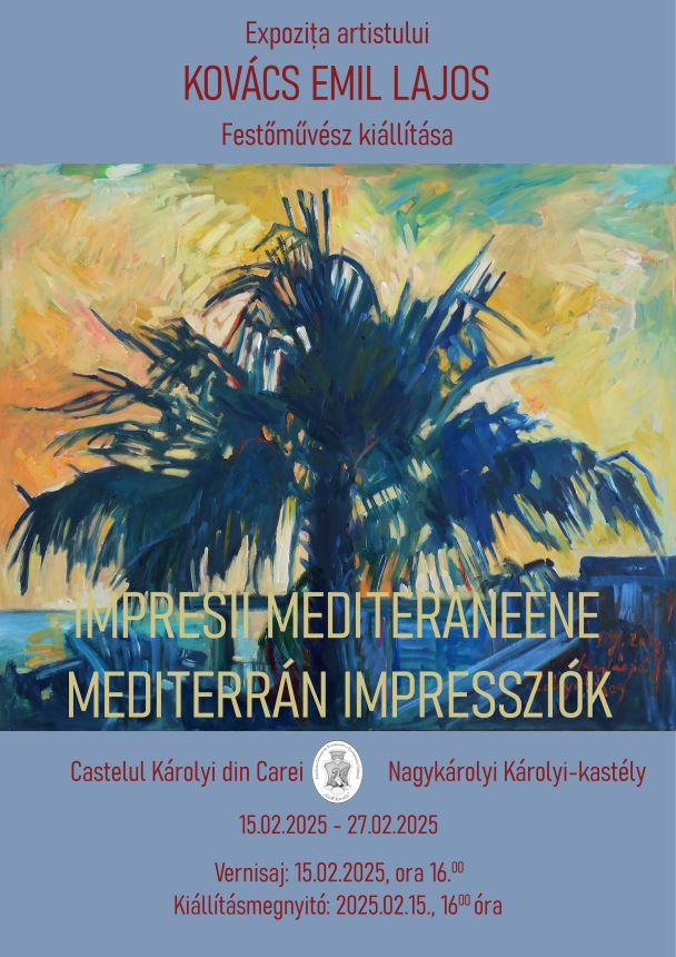 Kovács Emil Lajos festőművész kiállítása nyílik 2025. február 15én, szombaton délután 16 órai kezdettel a nagykárolyi kastély kiállítótermében. A kiállítás címe Mediterrán impressziók.