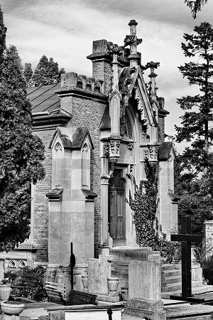 – A Gubernium Kolozsvárra költözése óriási lendületet adott a város fejlődésének. A pompás palotát építő Bánffy György kormányzó példáját követve a főúri családok, főtisztviselők és nagypolgárok versengve építtették fényes házaikat, palotáikat a város szívében. Közben a Házsongárdi temetőben kerteket vásároltak, amelyeket a 19. század második felétől kezdve temetkezési helyként használtak. Az 1585-ben megnyitott házsongárdi köztemetőt az előző két évszázad kezdetleges reneszánsza és barokkja után késő barokk, klasszicista és empire stílusjegyek uralták, majd az 1840-es évektől kezdve a neogótika árasztotta el. Nem kizárt, hogy a főtéri templom akkoriban épülő neogótikus tornya is hatással volt a stílus elterjedésére. Az 1870-es évektől a neogótika más stíluselemekkel keveredve az eklekticizmusba hajlott át. A Kertek legszebb sírboltjai közül a hídvégi Mikóké neogótikus, az iktári Bethleneké neoromán, a bethleni Bethleneké klasszicizáló stílusú, a többi kevert. Számomra feltűnő és megható is, hogy a sírépítmények stílusa, mérete, egyedisége mennyire tükrözi a kiváltságos erdélyi családok anyagi lehetősége mellett az egyéniségét, ízlését és szépérzékét. Nincs két hasonló kripta a temetőben! Bár a hajdan füves-bokros magánkertekből álló, nagyobb távolságokra egy-egy impozáns sírral, kriptával, a főút felé míves, magas vasrácsos kerítéssel és kétszárnyas kapuval ékeskedő temetőrész ma is a Kertek nevet viseli, az államosítás után betonrengeteggé változott. A szigetekként megmaradt, pusztulásra ítélt történelmi és művészettörténeti szempontból értékes kripták, sírépítmények egyre fogyó számban és romló állapotban maradtak reánk.