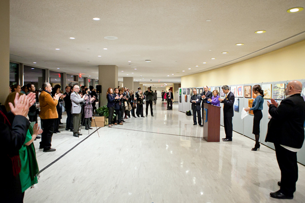 – Természetesen. Az ENSZ székhelye 2015 decemberében látta vendégül az Inter-Art Alapítvány művészeit, akik a világszervezet fennállásának 70. és Románia ENSZ tagságának 60. évfordulójára emlékeztek, egyben korunk egyik legsúlyosabb problémájára, a klímaváltozásra – a vendéglátó szervezet egyik kiemelt irányelvére – a művészet eszközeivel próbáltuk felhívni a figyelmet. Összesen 33 ország 52 művésze mutatta be alkotásait, őket Cristina Gallach, az ENSZ altitkára köszöntötte. A Román Kulturális Intézet New Yorkban szintén fogadta a több projekttel jelentkező Inter-Art Alapítványt: 25 romániai művész kisplasztikai alkotásaiból rendeztek kiállítást, a Transylvania in Black&White című rendezvényen, amelyen velem együtt Lixandru Róbert és Bakó Andrei metszeteit és fotóit, illetve Ioan Hădărig verseit mutatták be. Ugyanakkor bemutattak öt könyvet is: Az ég szárnyait és A hajdani Nagyenyed képeit, a The Touch of Tomorrow című fantasztikus-prózagyűjteményem, a Bone, Flesh and Fur című háromszerzős kötetet (az amerikai Patricia Goodrich és Elisabeth Raby, valamint a nagyenyedi Ioan Casandra munkáját), és a húsz kortárs költő verseiből válogatott, Poèmes égarés d’ un autre siècle című kétnyelvű (román–francia) antológiát. Az eseményt a kolozsvári televízió stábja is rögzítette. Az út harmadik kiemelkedő eseménye nevemhez kötődik: Egy világ két kontinensen címmel szerveztem egyéni tárlatot a New York-i Magyarok Házában, a kiállítást Nagy Ildikó, az intézet elnöke és dr. Kumin Ferenc, Magyarország főkonzulja nyitott meg. Úgy érzem, alkotásaim elnyerték az amerikai érdeklődők tetszését, a közönség értékelte egyéni, újításokra törekvő stílusomat, festményeimnek karizmatikus jellegét, az alkotások belső terének újradimenzionálását, amely újfajta értelmezési viszonyt hoz létre a mű és szemlélője között.