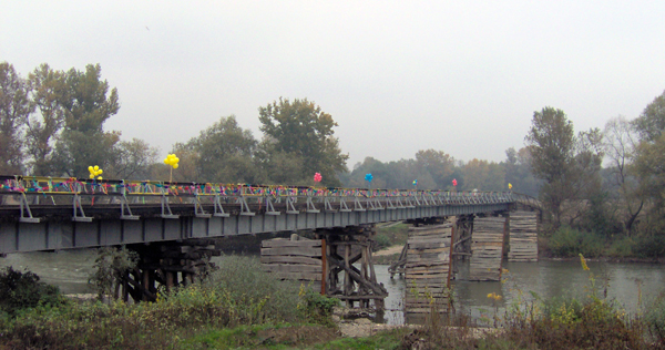 Amint említettem, Tompaházára Enyedszentkirályon keresztül lehetett a legkönnyebben eljutni, aszfaltozott úton, ezelőtt néhány évig, vagy a Maroson átkelve komppal, Enyedről jövet. Mindez megváltozott 2008-ban, mivel ekkor felavatták egy száz méter hosszú és négy méter széles fahidat, ami megkönnyítette és megrövidítette néhány kilométerrel a Tompaháza és Nagyenyed, illetve a Tompaháza és az 1-es nemzeti útszakasz közti távolságot. Habár a híd kizárólag személygépkocsiknak volt tervezve, néhány éve traktorok és kamionok is használták, így nagyon megrongálódott és lassan már használhatatlanná válik. Idén nyáron fogtak neki az új, korszerű betonhíd készítésének, aminek a tervek szerint 2018-ra kell elkészülnie.
