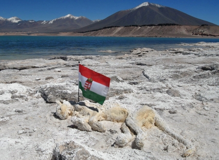 HZs: Elég rossz lehet, különösen ha arra a szerencsétlen, mumifikálódott párára gondolok, amelyről az imént említést tettél. Nem tudjuk, mióta lehetett ott. Akkoriban még mindig nevetség tárgya volt az „ugrani készülő magyar puma” közgazdaságtani toposza, így odatűztünk mellé egy kis magyar zászlócskát, hogy íme: megtaláltuk a magyar pumát, nagyot ugrott, de nem lett jó a vége. Valójában a puma még elvánszorgott a tóhoz, de nem ihatott a sós vízből, így ott pusztult el szegény. A nagy szárazság és a testére kicsapódó só tökéletesen konzerválta, szőrzete olyan épnek tűnt, mintha egy plüssállatkát nézegettünk volna. Második alkalommal, mikor ezen a terülten jártunk, a pumát már nem találtuk, elvihette valaki. Szomorúan tapasztaltuk, hogy az „animal muerto”-nak mily gyorsan híre ment ezen a lakatlan területen. Valaki talán fölpakolta egy teherautó platójára, és magával vitte. A mi magyar pumánkkal együtt odalett a varázslat is, amelyet ennek a helynek az érintetlensége jelent.